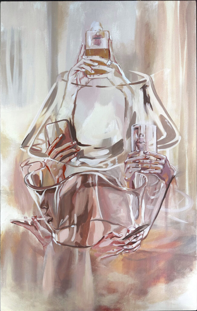 I’m a painter drawn to the parts of us that feel a little exposed, emotional, and hard to put into words. My work uses fragments of the body like hands, mouths, and faces, along with shifts in scale and texture, to explore what’s happening beneath the surface. I paint large and loosely because it lets the work feel more like a song than a drawing, something physical and immediate. A lot of my ideas come from my own inner world, my relationships, and those in-between moments that feel both messy and meaningful. At the end of the day, I want my paintings to take something unspoken or uncomfortable and turn it into something rich, sensory, and beautiful.